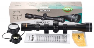 Прицел оптический KONUS KONUSHOT 3-12x40 30/30 с кольцами | 7235 - недорогой и надежный прицел для охоты на мелкую дичь и для спортивной стрельбы на средне-дальние дистанции. Из-за демократичной цены его часто покупают в качестве первого прицела для спортивной винтовки. В сравнении с моделью KONUSHOT 3-9x40 30/30 данный прицел имеет расширенный диапазон увеличения и бо́льшую светосилу, но немного проигрывает в широте обзора.