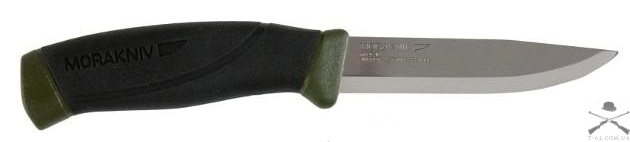 Клинок виготовлений з карбонової, високовуглецевої сталі. Товщина обуха ножа Mora Companion MG – 2,5 мм. і він звужується практично в нуль до закінчення клинка. Лезо має лазерне заточування, яке зберігається протягом довгого періоду користування. Рукоятка має характерний вигин для зручного хвату рукою. Рукоятка ножа дуже зручна, ергономічна через що ніж у руці сидить дуже комфортно і при цьому надійно. Основа рукоятки виконана з пластику, тобто сам клинок запаяний у дуже щільний пластик, а поверх пластику вкрита тонкою гумою. Гума не дозволяє рукояти ковзати навіть у мокрій руці. На рукояті передбачений підпальцевий упор, завдяки чому великий палець лягає на рукоятку дуже зручно. Ніж Mora Companion MG Carbon універсальний - він добре ріже продукти, їм просто стругати гілки або виконувати будь-які інші завдання, необхідні в поході, на риболовлі, взагалі під час активного відпочинку.