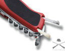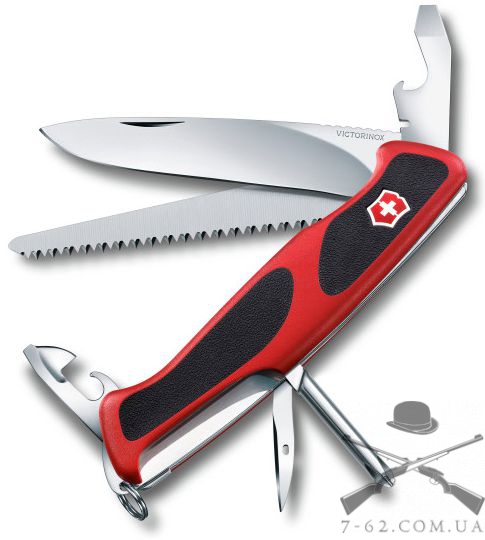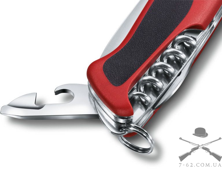 Швейцарський ніж Victorinox RangerGrip 0.9663.C - це кишеньковий швейцарський ніж, що має великий набір виконуваних функцій. Інструмент містить у собі такі опції: лезо з системою блокування, відкривачка для консервних банок, мала викрутка, відкривалка для пляшок, пристосування для згинання дроту, пила по дереву, розгортка, шило, хрестова викрутка, кільце для ключів, пінцет, зубочистка. Велике лезо стане для Вас надійним помічником на роботі, у відрядженні або туристичному поході. До того ж має спеціальне серрейторне заточування, що дозволяє легко різати канати, стропи та інші тканини. Ріжуча пилка по дереву чудово розпиляє дерево невеликого діаметру. У ремонті для згинання дроту Вам завжди підійде спеціальний інструмент. Викрутки легко закрутять та відкрутять кріпильні вироби. А ось спеціальні відкривалки для консервних банок і пляшок завжди знадобляться Вам, наприклад у відрядженні або туристичному поході. Додатково Victorinox Rangergrip 0.9663.C містить такі стандартні елементи як пінцет і зубочистка. Також варто відзначити і ексклюзивний дизайн цієї моделі. Тому, Victorinox Rangergrip 0.9663.C чудово підійде до душі кожному поціновувачу високої якості та довговічності. До того ж рукоятка виконана зі спеціальними накладками із високоміцного пластику. Додатково має спеціальні протиковзкі вставки.