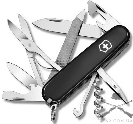 Швейцарський ніж Victorinox Mountaineer 1.3743.3 - незамінний інструмент, який підійде як для експедиції в гори, так і для вирішення повсякденних завдань. Цей ніж стане для Вас чудовим помічником у роботі з металом. Містить різальну пилку по металу, яка зробить відмінний зріз. Додатково інструмент оснащений напилком для обробки металу. Великий та малий клинки Вас виручать у багатьох роботах. Наприклад, з ними Ви наріжете продукти і зробите чищення фруктів або овочів. При цьому ріжучі інструменти довгий час не вимагають додаткового заточування. У складі складного набору та багатоцільовий гачок, який підніме Вам тяжкості та послужить у відтягуванні предметів. Під час відряджень та подорожей Вам завжди знадобиться консервний ніж та відкривачку для пляшок. Тоді, як на пікніку спеціальний штопор витягне Вам будь-яку пробку з пляшки. Плюс складний набір має і спеціальний елемент, який зніме ізоляцію з проводів. А також викрутку для закручування і відкручування кріпильних виробів, наприклад шурупів або гвинтів. У повсякденних цілях Вас порадують ножиці, пилка, а також пінцет і зубочистка. Відмінно доповнює цю модель і навісне кільце, яке послужить Вам замість брелока. Чорний колір нейлонових накладок індивідуалізує ніж.