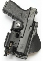 Кобура Fobus для Glock-19/23 - це пластикова кобура, що надійно кріпиться на пояс практично будь-якої ширини. Щільність фіксації зброї може регулюватися спеціальним гвинтом, навіщо згодиться і звичайна монетка. Міцний пластик і простота конструкції роблять кобуру довговічною та актуальною завжди. Виготовляється під більшість моделей сучасних пістолетів (зокрема ПМ, Форт-12/14/17).