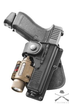 Кобура Fobus для Glock-17/23 - це пластикова кобура, що надійно кріпиться на пояс практично будь-якої ширини. Щільність фіксації зброї може регулюватися спеціальним гвинтом, навіщо згодиться і звичайна монетка. Міцний пластик і простота конструкції роблять кобуру довговічною та актуальною завжди. Виготовляється під більшість моделей сучасних пістолетів (зокрема ПМ, Форт-12/14/17).