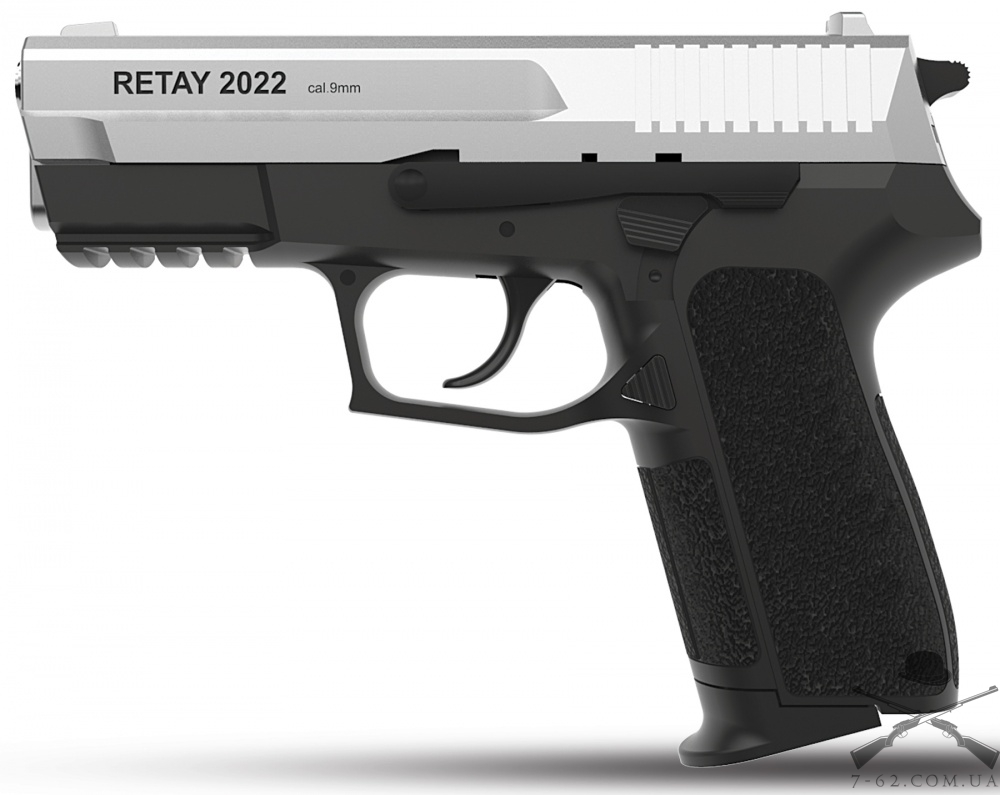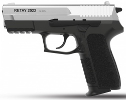Пістолет сигнальний Retay 2022 , Chrome - напівавтоматичний стартовий пістолет з УСМ подвійної дії, репліка Sig Sauer SP2022 . Пістолет оснащений запобіжником прапорця і планкою Пікатінні.