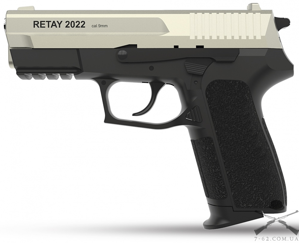 Пістолет сигнальний Retay 2022 , Satin - напівавтоматичний стартовий пістолет з УСМ подвійної дії, репліка Sig Sauer SP2022 . Пістолет оснащений запобіжником прапорця і планкою Пікатінні.