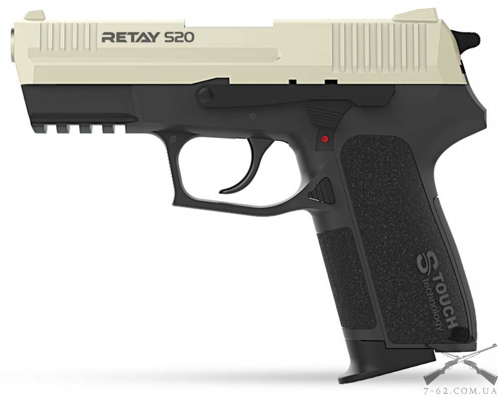 Пістолет сигнальний Retay S20 , Satin - напівавтоматичний стартовий пістолет з УСМ подвійної дії, репліка Sig Sauer SP2022 . Текстурована поверхня рукояті, створена за новою технологією X-Touch , забезпечує більш якісне утримання, керованість та маневреність пістолета. Пістолет оснащений запобіжником прапорця і планкою Пікатінні.