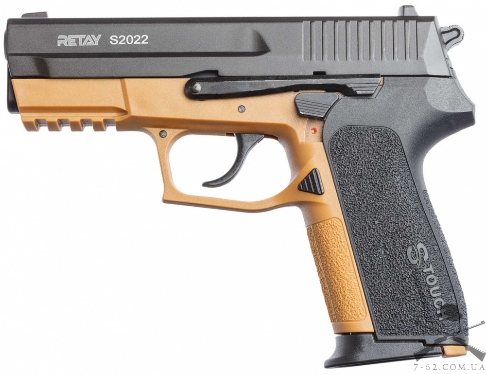 Пістолет сигнальний Retay 2022 , Tan - напівавтоматичний стартовий пістолет з УСМ подвійної дії, репліка Sig Sauer SP2022 . Пістолет оснащений запобіжником прапорця і планкою Пікатінні.