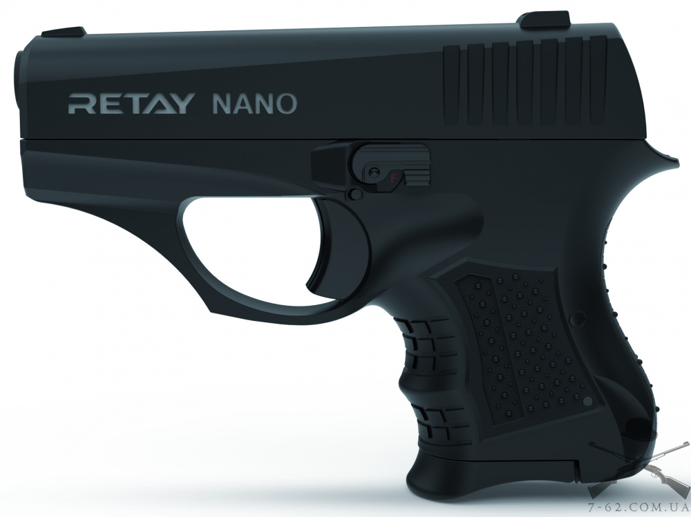 Пістолет сигнальний Retay Nano , 8 mm - напівавтоматичний компактний (довжина: 126мм, висота: 94мм, вага: 388г) стартовий пістолет. За рахунок невеликого розміру чудово підходить для прихованого носіння.