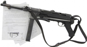 СХП Пістолет-кулемет MP-38* - охолощене зброя (вихолощене/демілітаризоване) - виріб, призначений для імітації пострілу тільки спеціальними імітаційними боєприпасами - холостими патронами (9мм).
