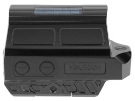 Багатошарове просвітлення всіх лінз забезпечує чудову видимість та зручність при наведенні на ціль. Приціл оснащений гібридною системою живлення на основі сонячних панелей Solar Failsafe™ у комбінації із батареєю типу CR2032. Бічний батарейний відсік повністю виконаний з металу та швидко і надійно монтується без застосування інструменту. Фірмова технологія Shake Awake™ забезпечує до 50 000 годин роботи (режим точка 2 МОА) від одного заряду основної батареї, активуючи підсвітку під час вібрації та деактивуючи її після тривалого спокою.