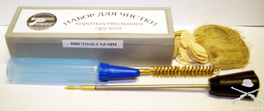 Набір для чищення короткоствольної зброї « Пістолет» 9 мм (резиностріл) у пластмасовому чохлі виробництва "Ружес".