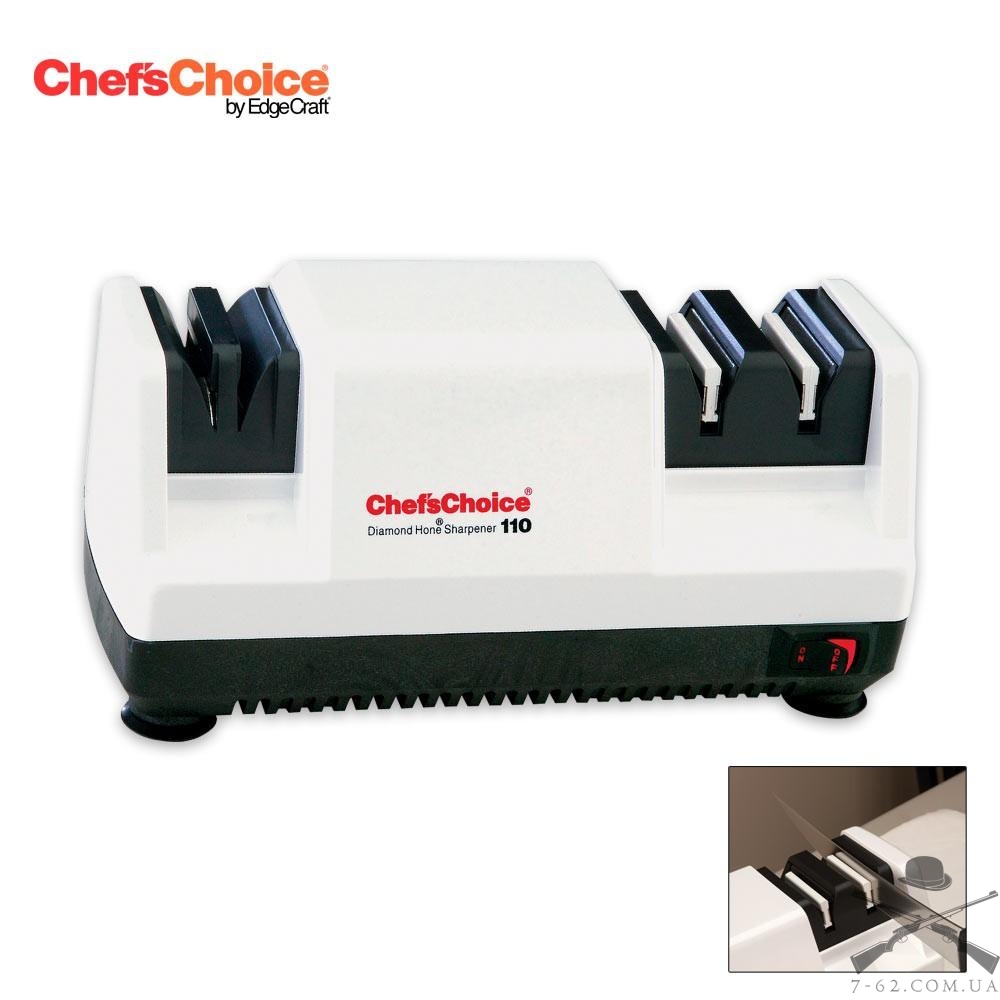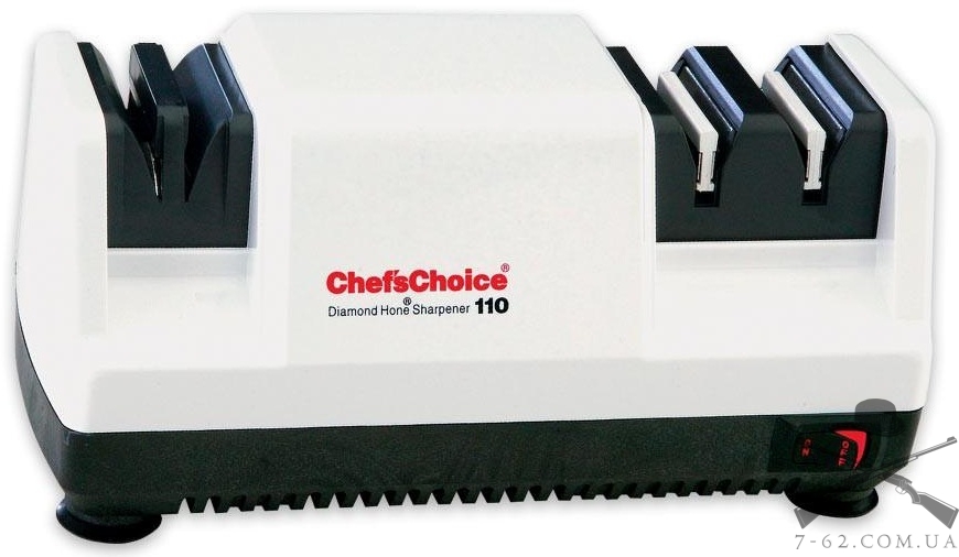 За допомогою запатентованої системи магнітних напрямних Bilevel® автоматично встановлюється правильний кут заточування в 20° для легкого та безпечного заточування. Потужність двигуна – 71 Вт. Модель Chef′s Choice 110 схвалена професійними кухарями у всьому світі та незамінна у побутовому домашньому використанні. Гарантія – 1 рік. Зроблено у США.